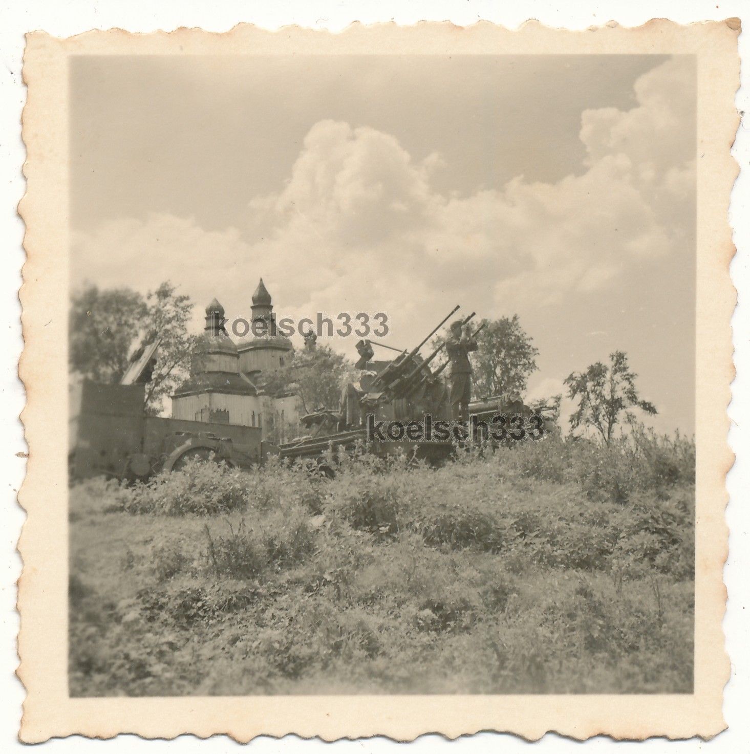 Foto Vierlings Flak Panzer Halbkette mit Sd. Anhänger