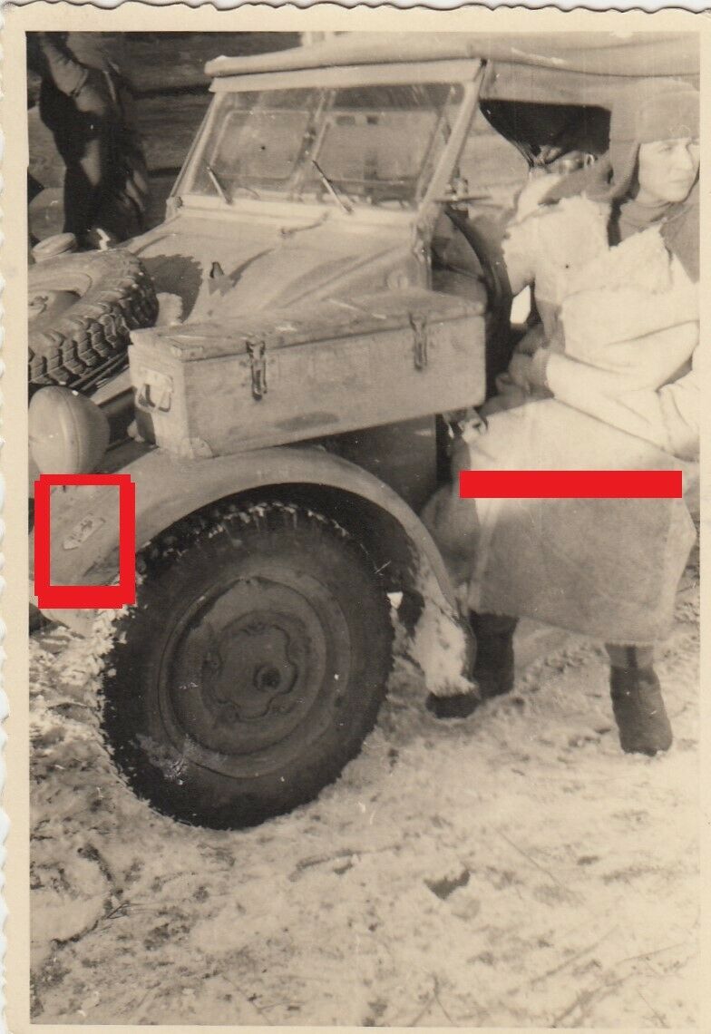 Foto Schirrmeister Sturmgeschütz Abteilung 600 mit VW Kübelwagen Wappen.