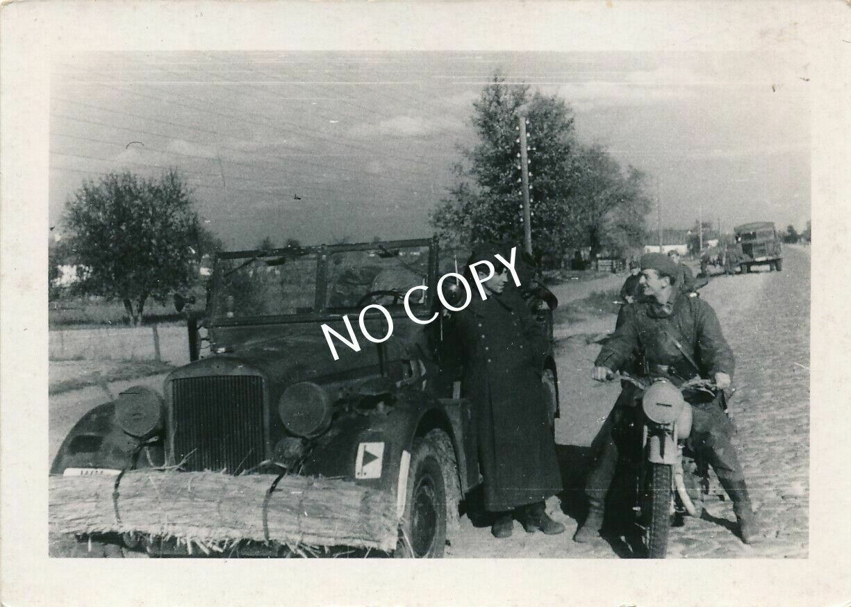 Foto WK II Russland Militär KFZ Wappen Biker Wehrmacht