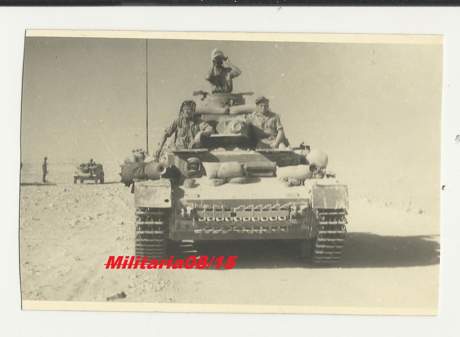 Foto 1943 Afrika DAK Panzer 3 o 4 und Kübelwagen