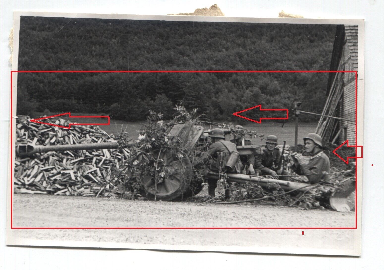 FOTO Pakgeschütz Stellung hinter Holzstapel Heimatfront 1944.