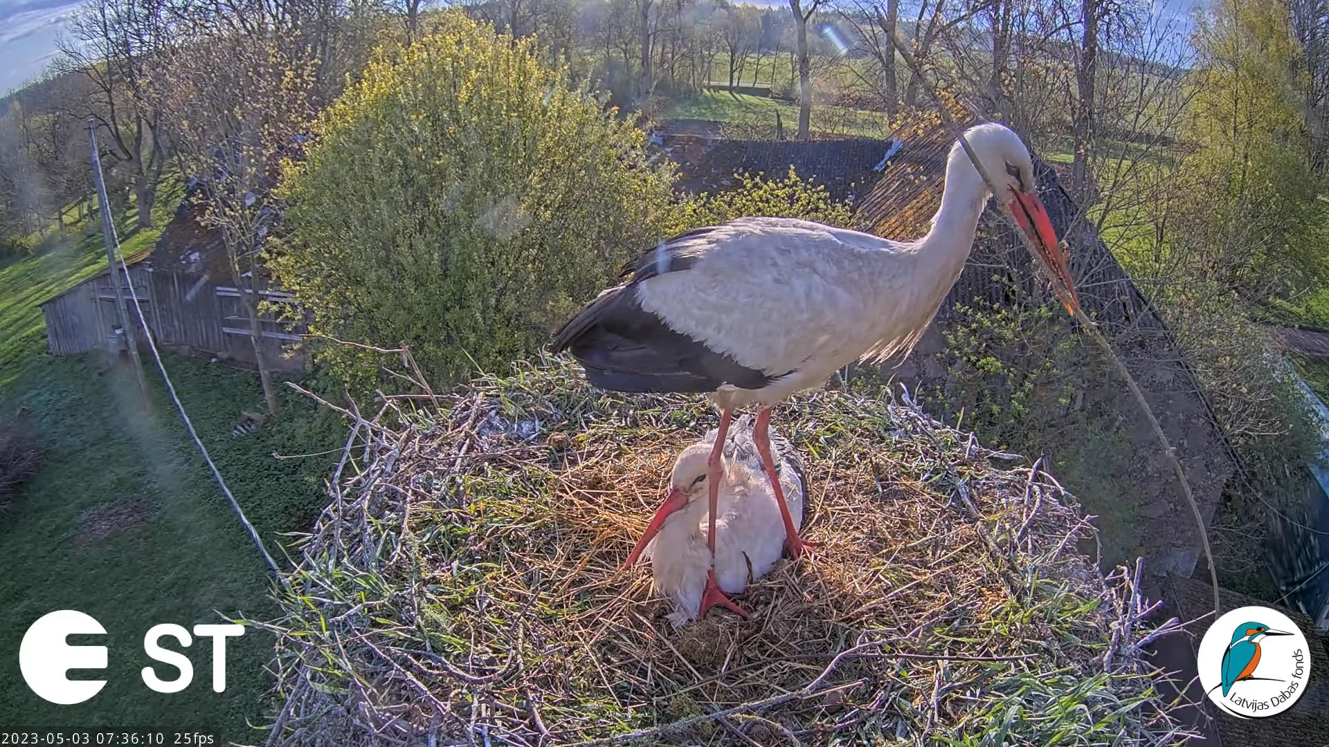 Baltie stārķi (Ciconia ciconia) Tukuma novadā - LDF tiešraide __ White storks in Tukums, Latvia 5-5-