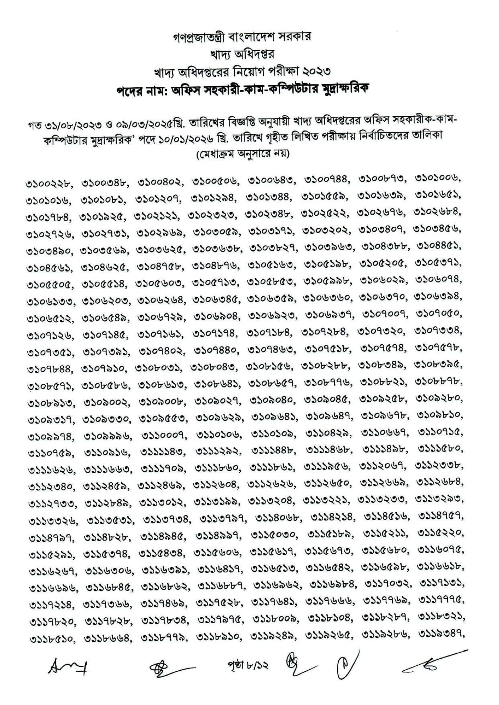 Food Office Assistant Cum Computer Typist Written Exam Result 2026 PDF 10