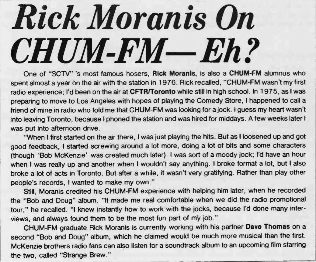 How Rick Moranis Ended Up On CFTR & CHUM-FM July 1983