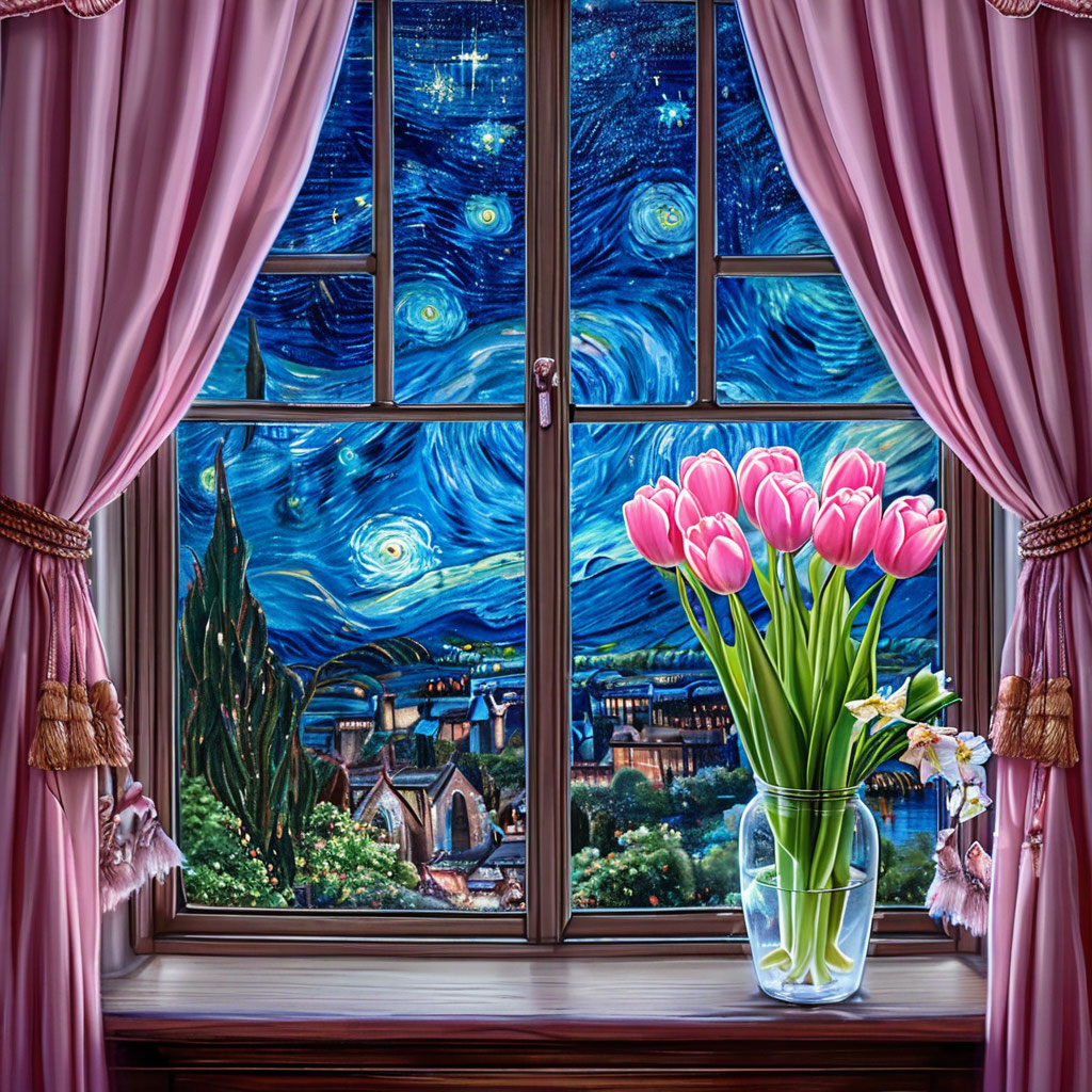букет тюльпанов на окне