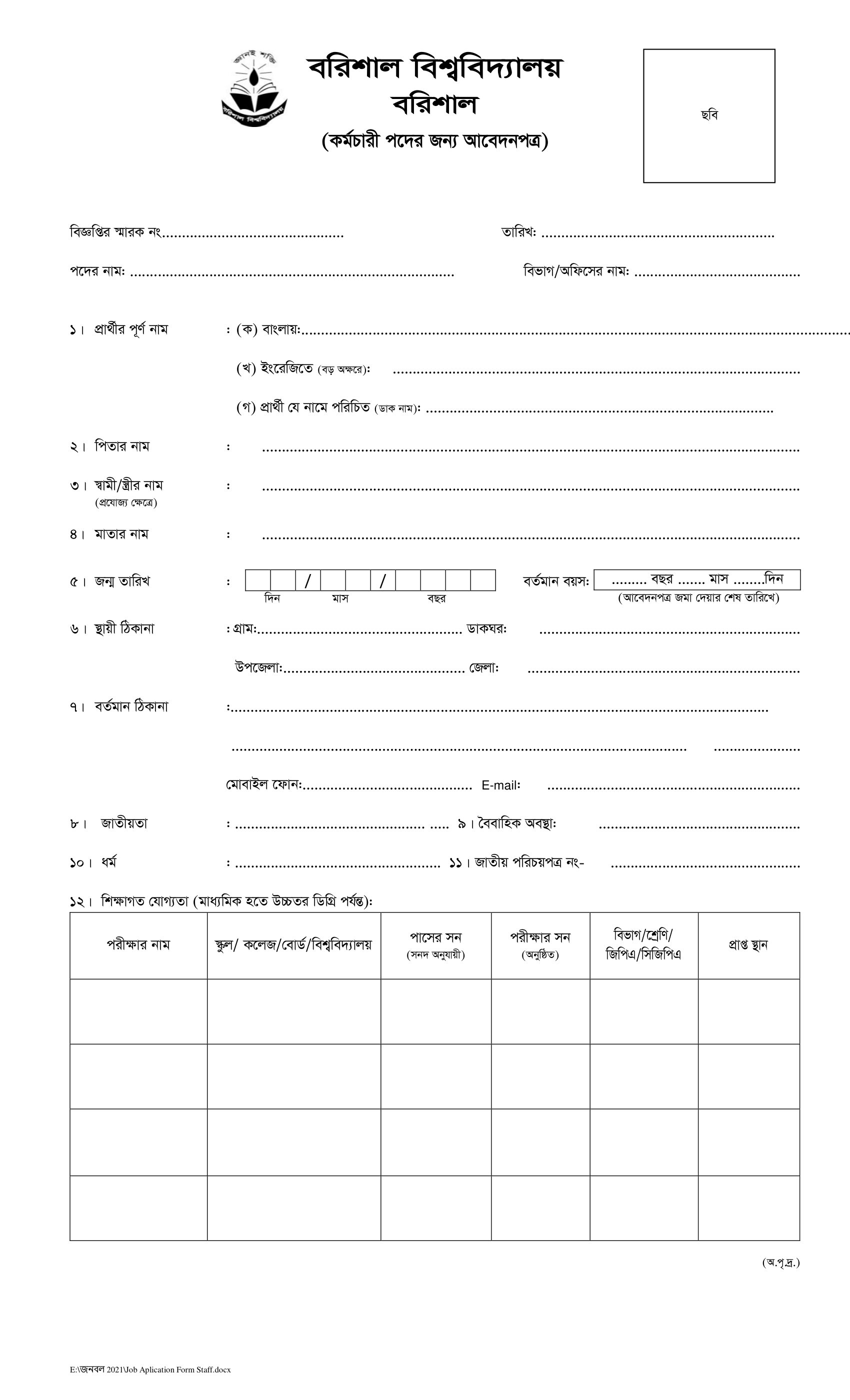 BU Staff Job Application Form 2024 PDF-1