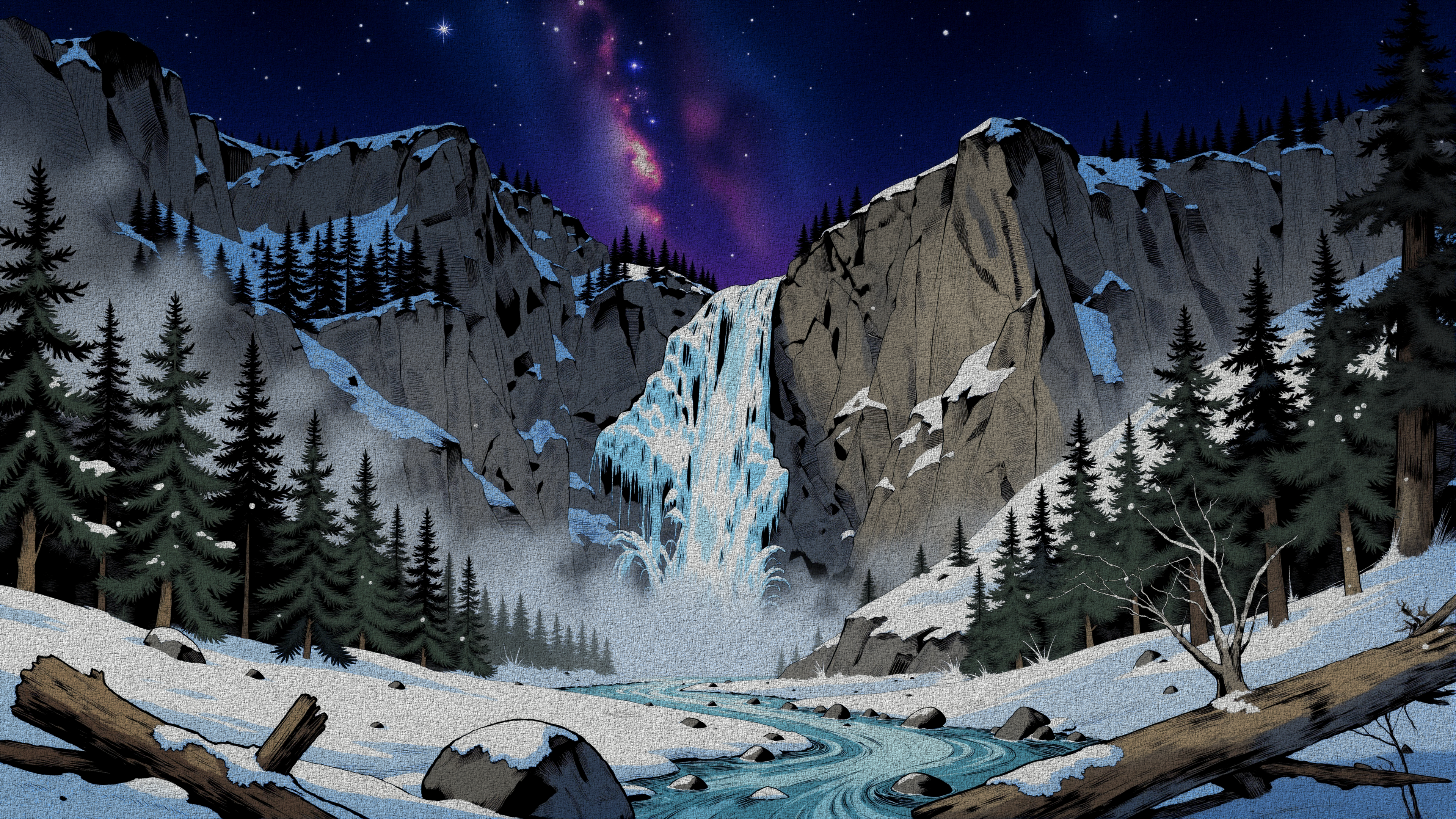 Winter Mountain Cascade Night