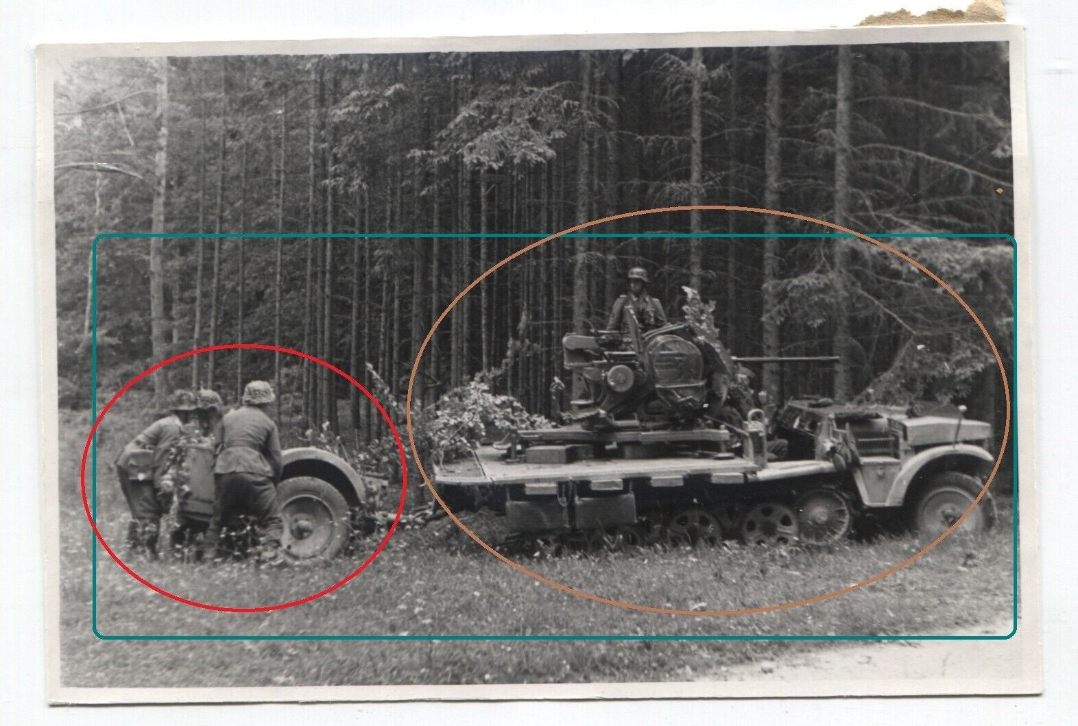 FOTO Panzer Halbkette Flakgeschütz in Wald Stellung2