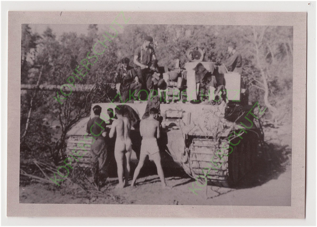 Foto Nackte muskulöse Soldaten vor Tiger Panzer