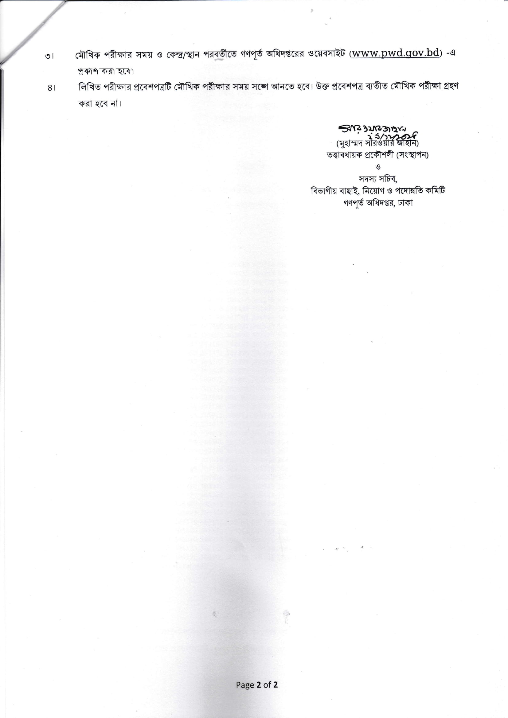 PWD Work Assistant Written Exam Result 2025 PDF 2