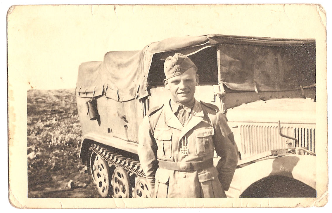 Afrika Kämpfer,mit Orden,vor Kettenfahrzeug