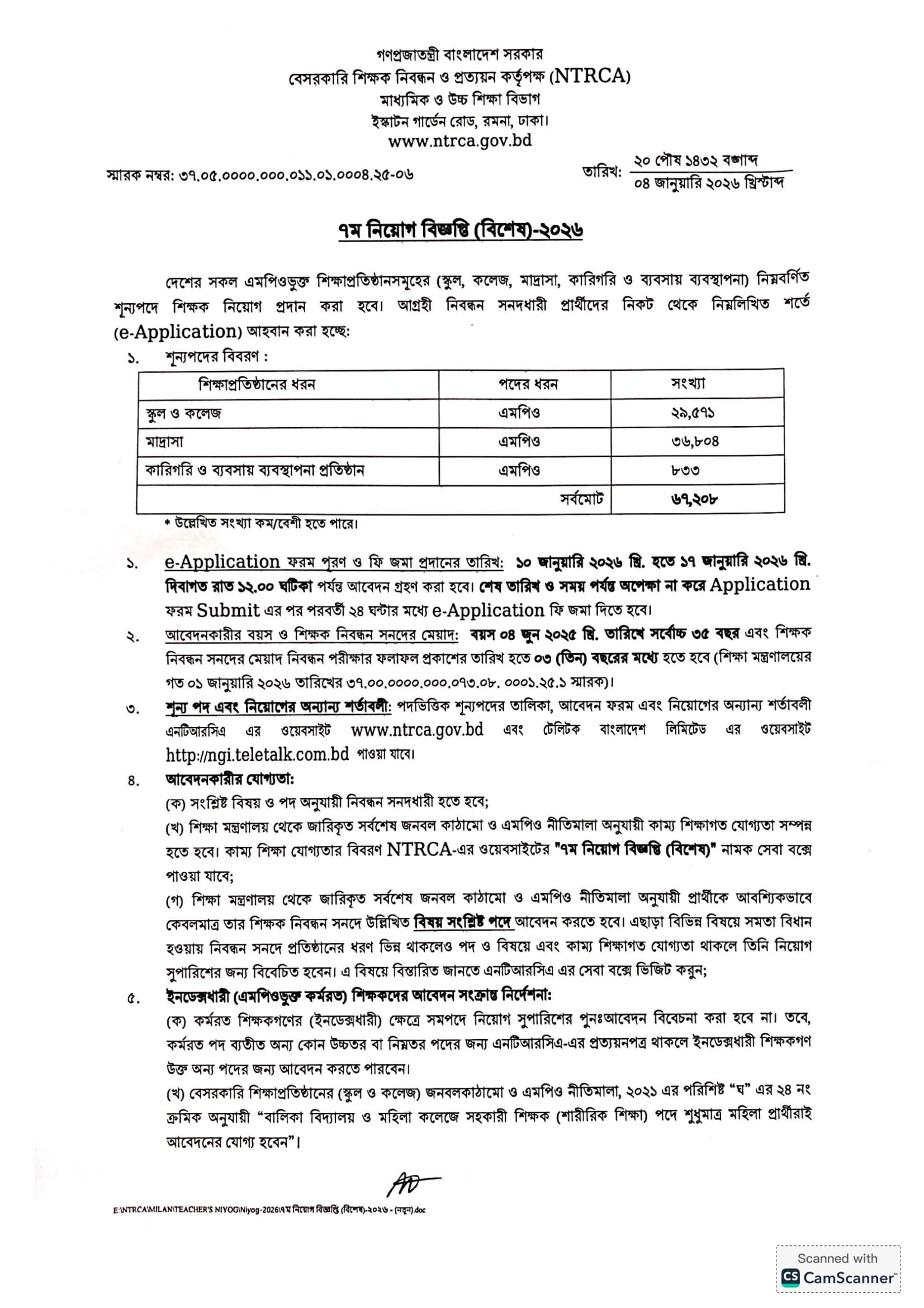 NTRCA 7th Public Notice 2026 PDF 1