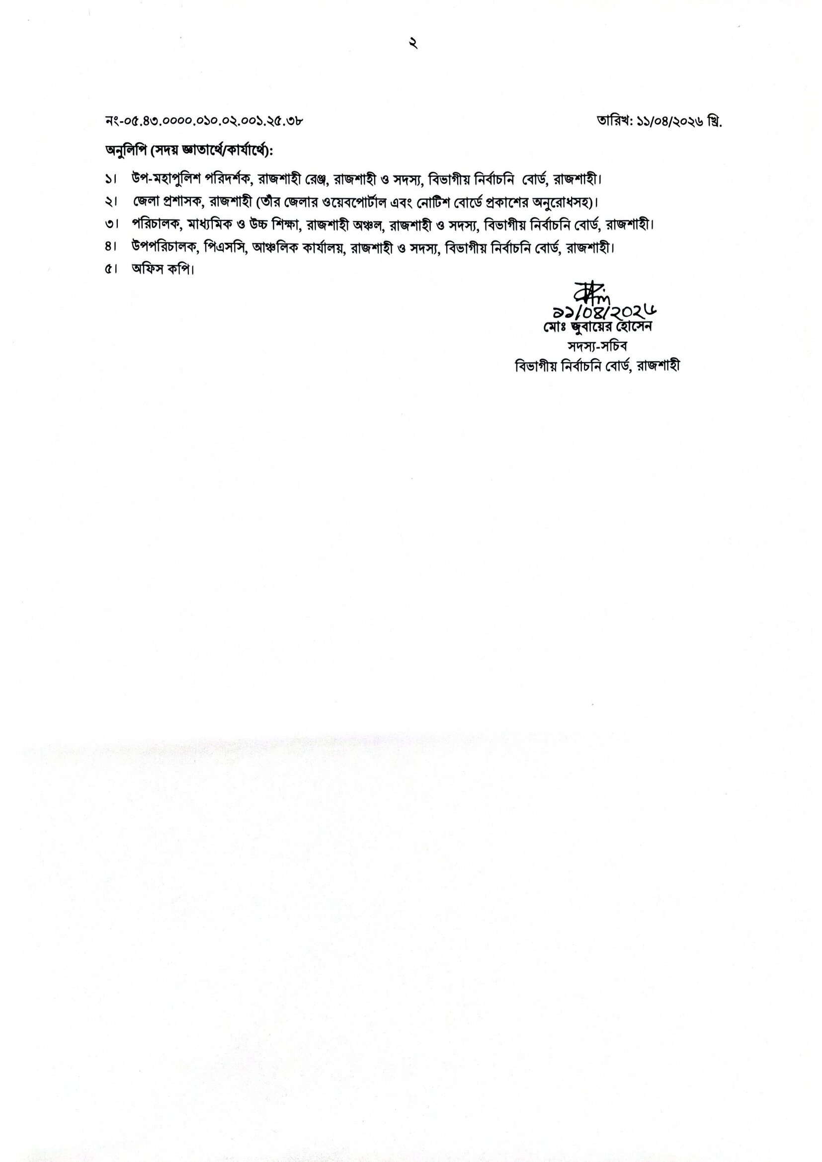 DC Office Rajshahi Practical Result 2026 PDF 2