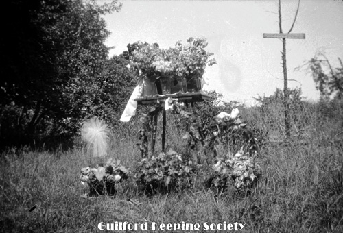 572_KFH-569 Buckets of flowers on and around wooden table, some with ribbons, wire fence wrapped aro