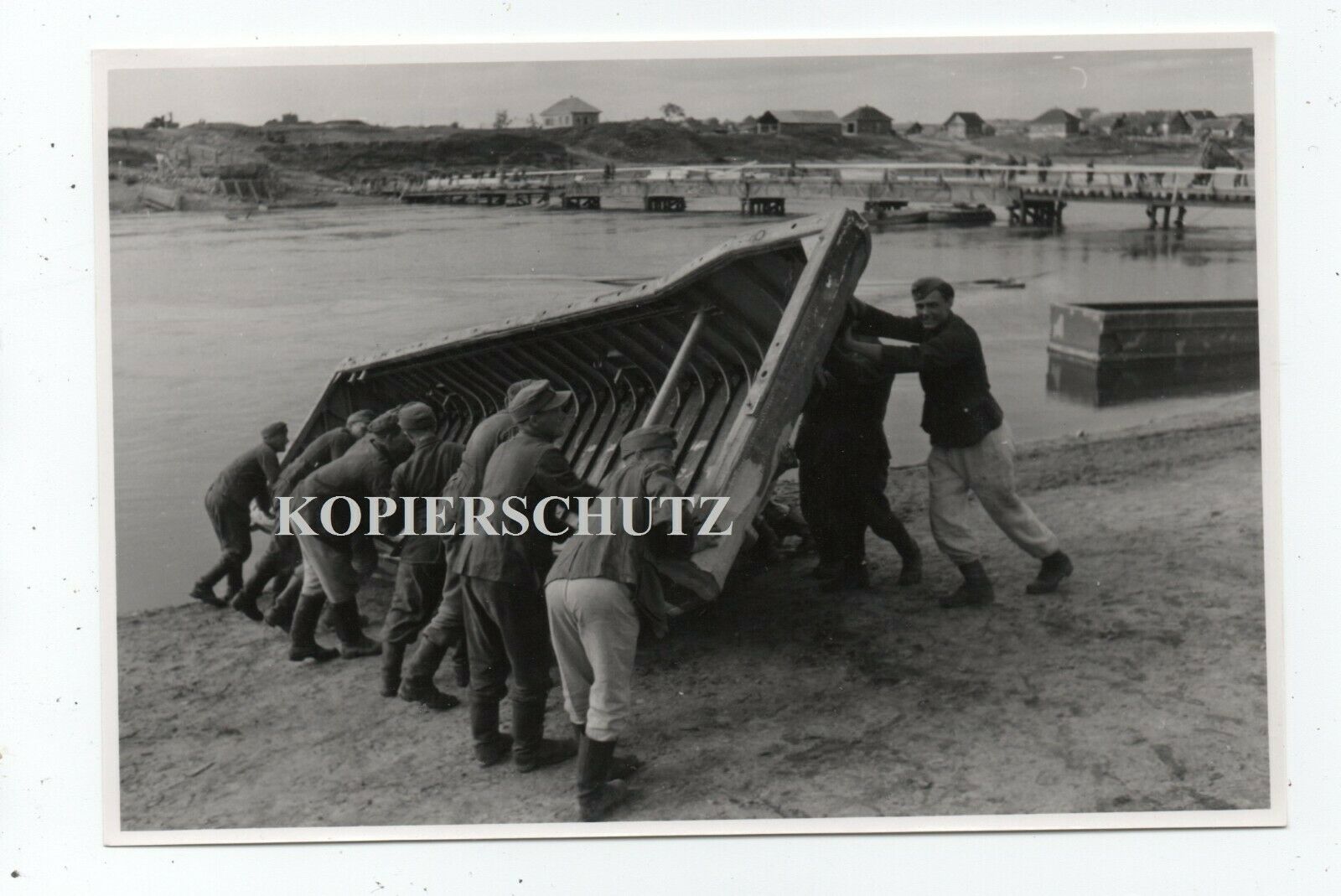 Russland 44 Orscha Dnjepr Notbrücke Schiff Boot Ponton Schlauchboot Soldat