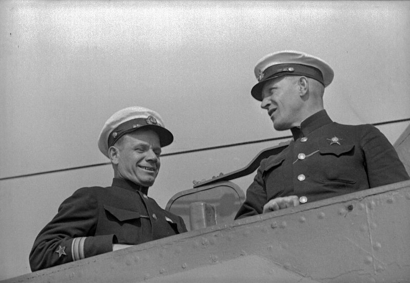 Д-2 военком старший политрук ... и командир Д-2 старший лейтенант Жуков Аркадий Алексеевич справа