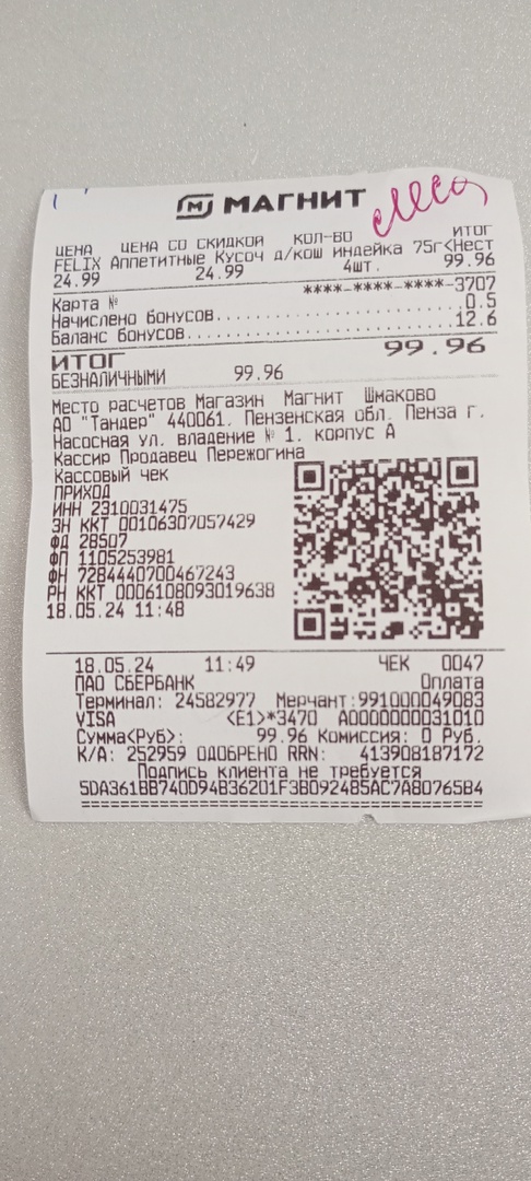 леся чек 18.05.2024 феликс 99,96