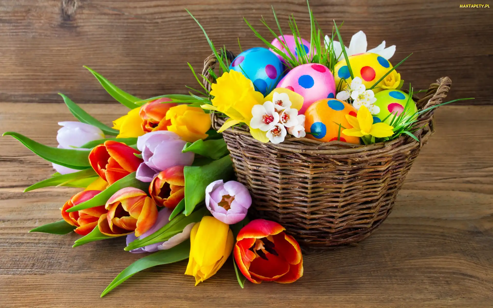 203178 koszyk awka wielkanoc tulipany kolorowe pisanki