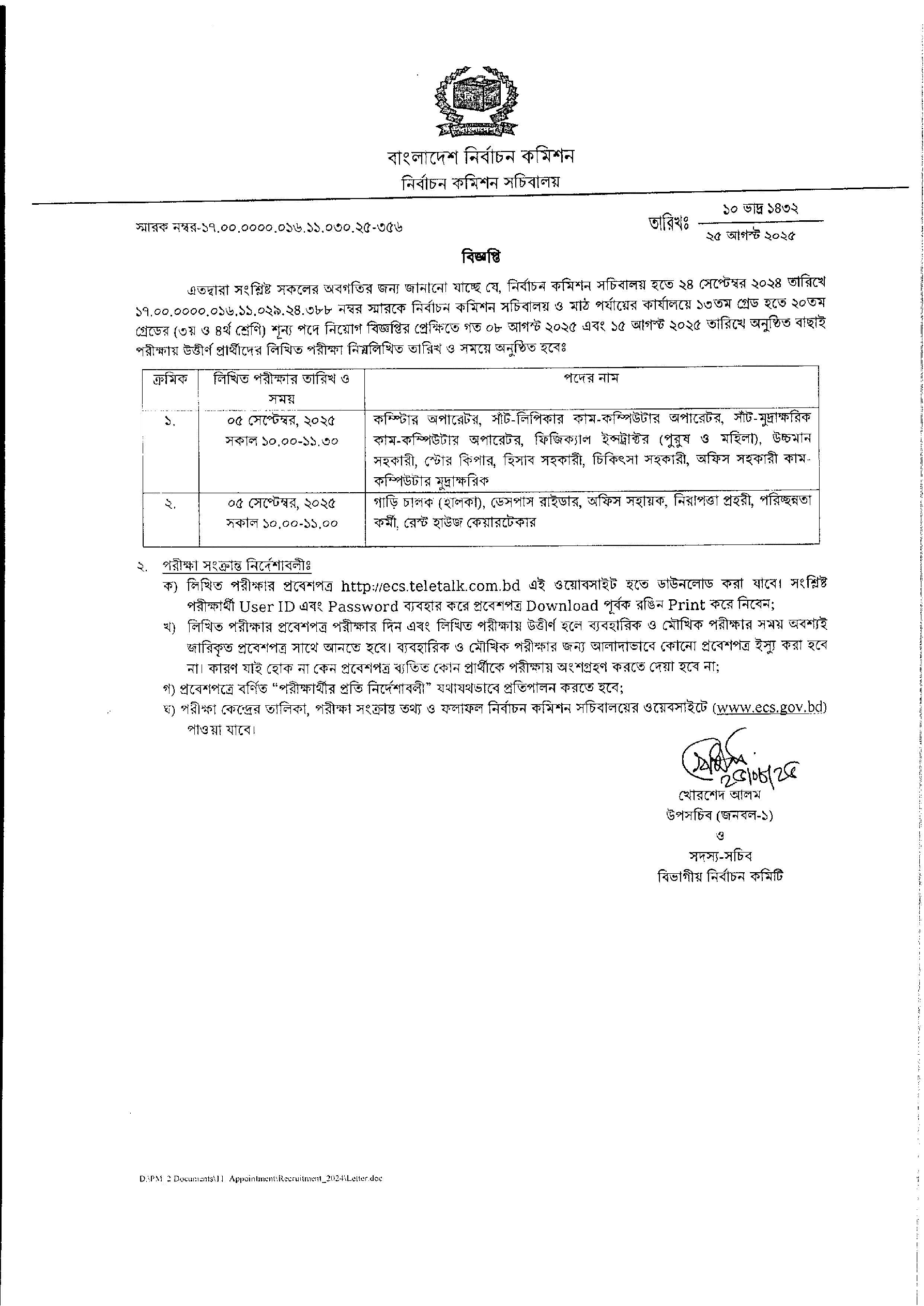 ECS Written Exam Date 2025 PDF