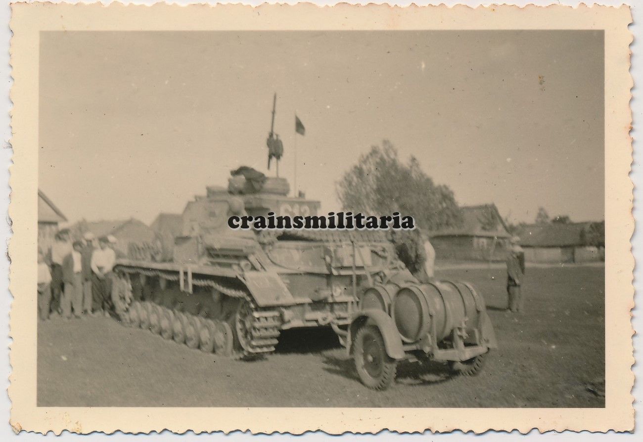 Orig. Foto Vormarsch Panzer IV Tank m. Kennung und Anhänger in R