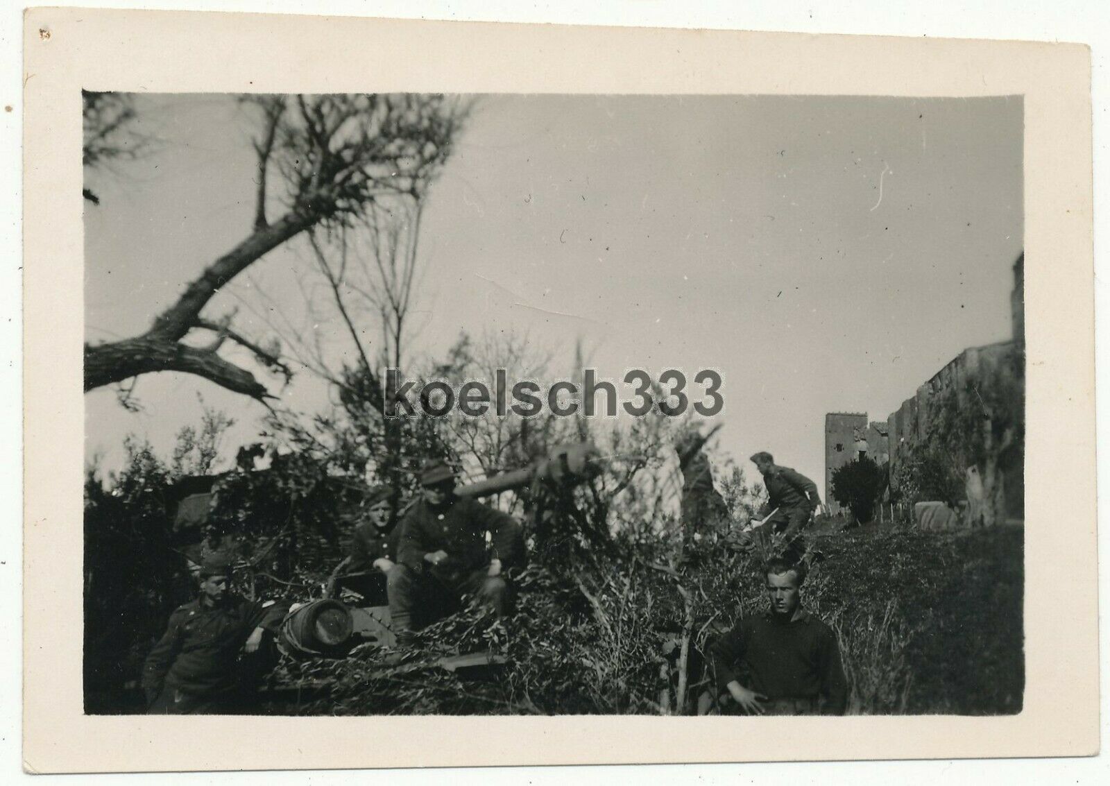 Foto Panzermänner der Wehrmacht am eingetarnten schweren Panzer an der Ostfront