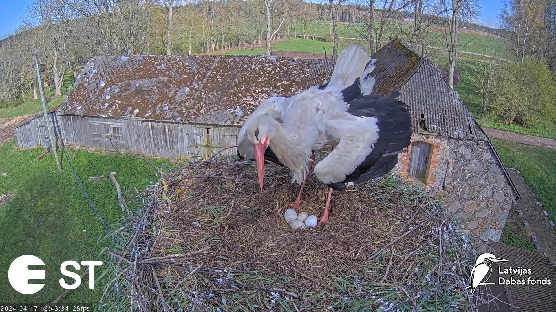 Baltie stārķi (Ciconia ciconia) Tukuma novadā - LDF tiešraide __ White storks in Tukums, Latvia 9-34