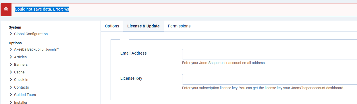 Joomla admin panel