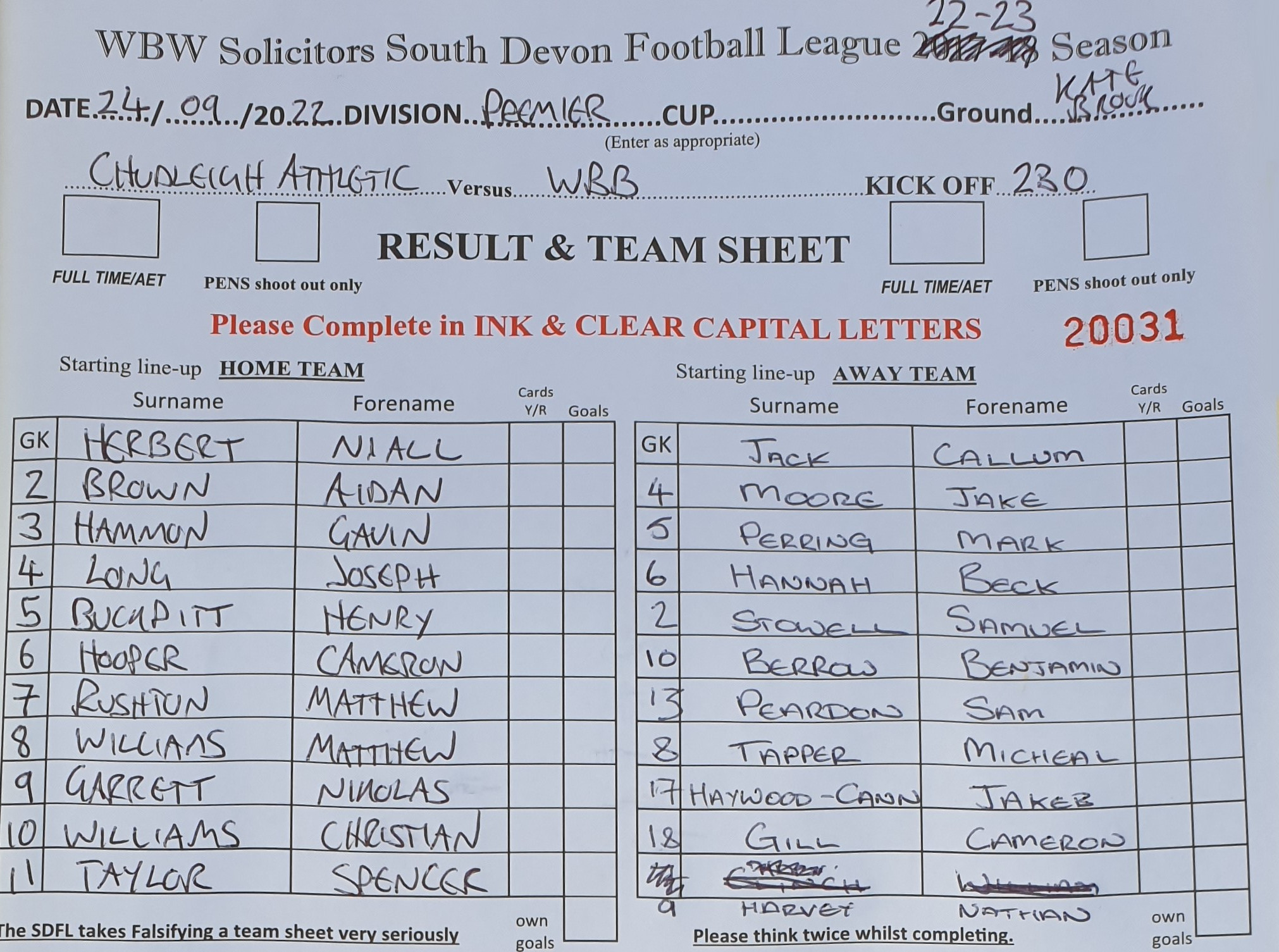 team sheet