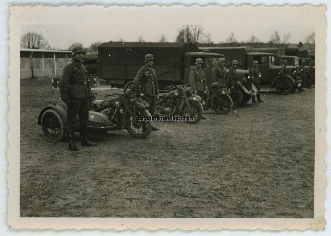 Orig. Foto 71.ID Kradmelder Motorrad m. Wappen in Lager KÖNIGSBRÜCK Sachsen 1941