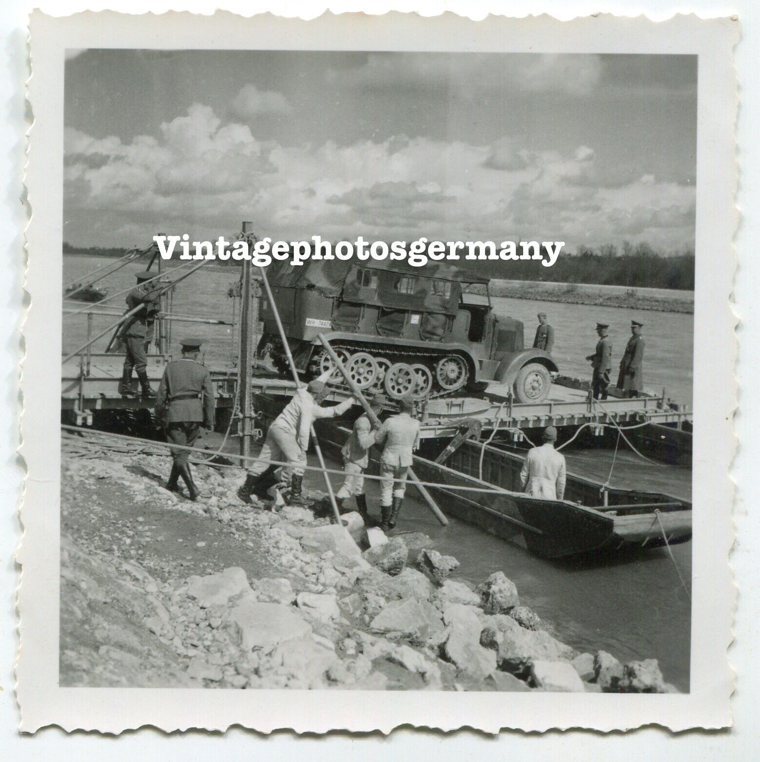Foto WH Halbkette SdKfz Tarnung Camo Panzer Pioniere Brücke Boote