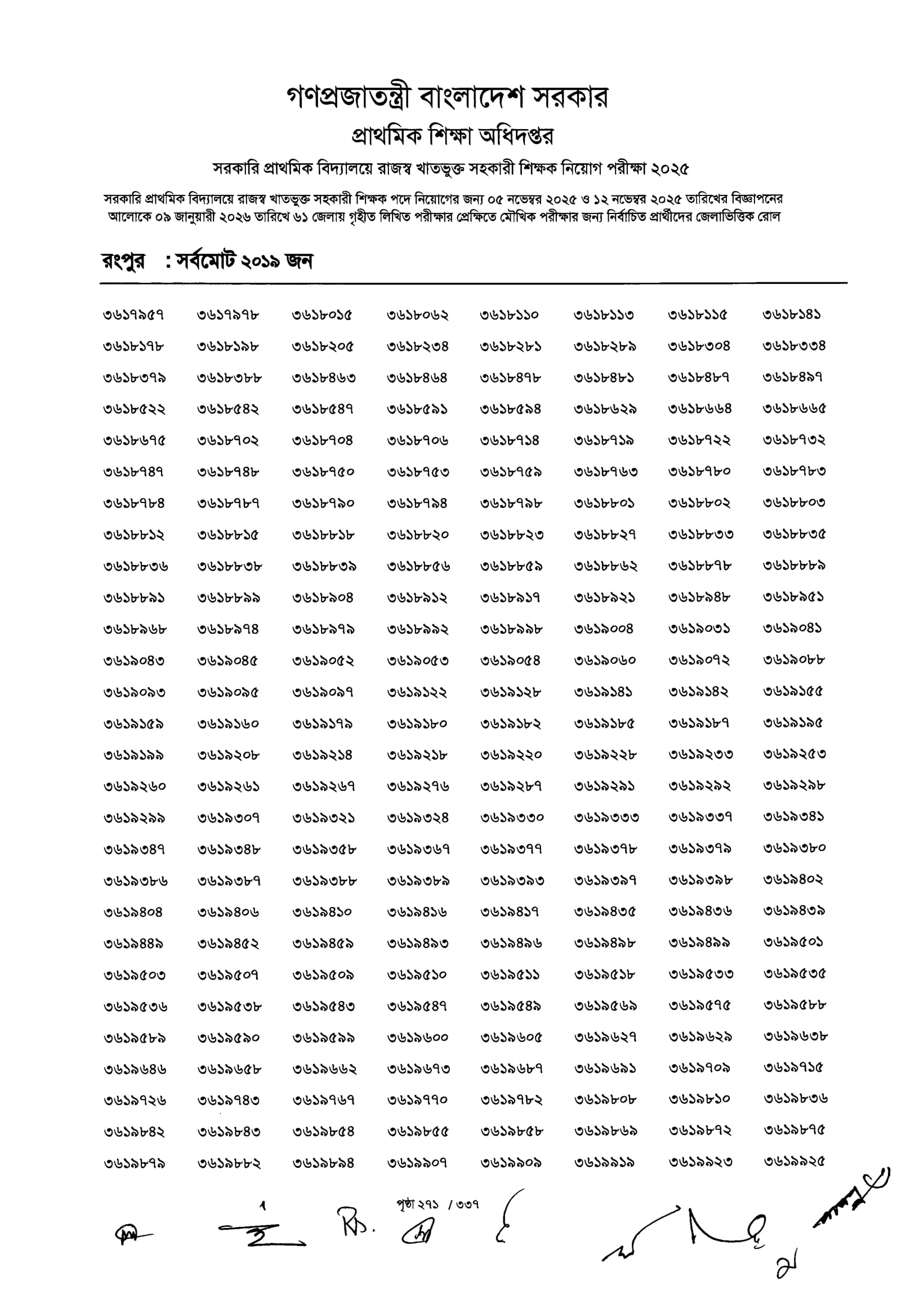 Primary MCQ Exam Result 2026 PDF 273