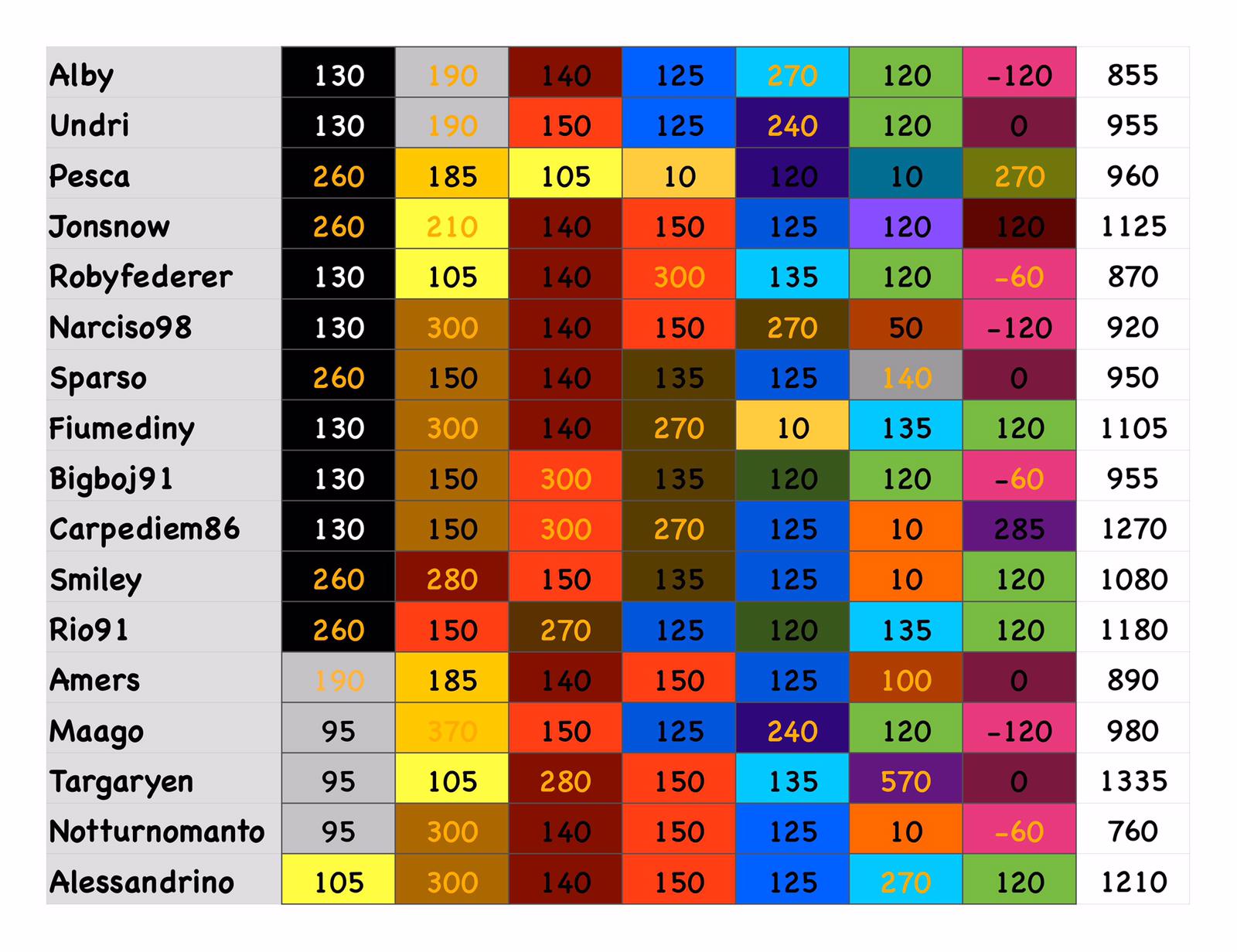 punteggi team