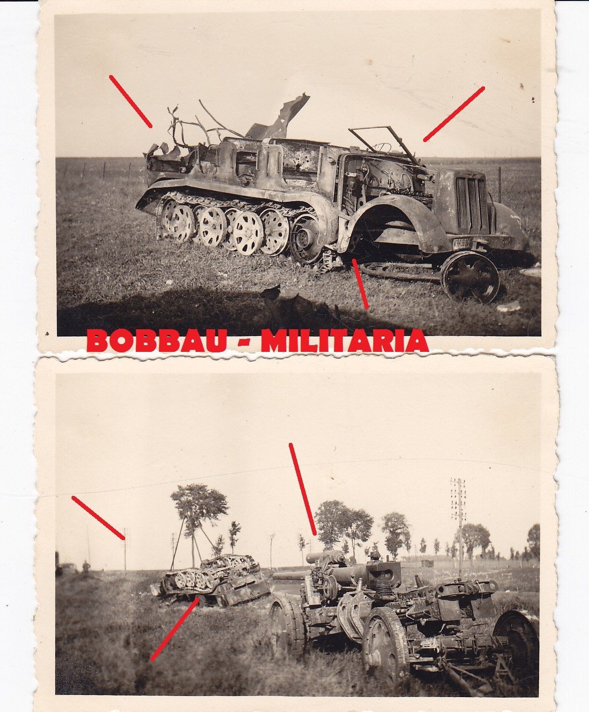 durch Panzer-Beschuss zerstörtes Sd.Kfz Halbkett
