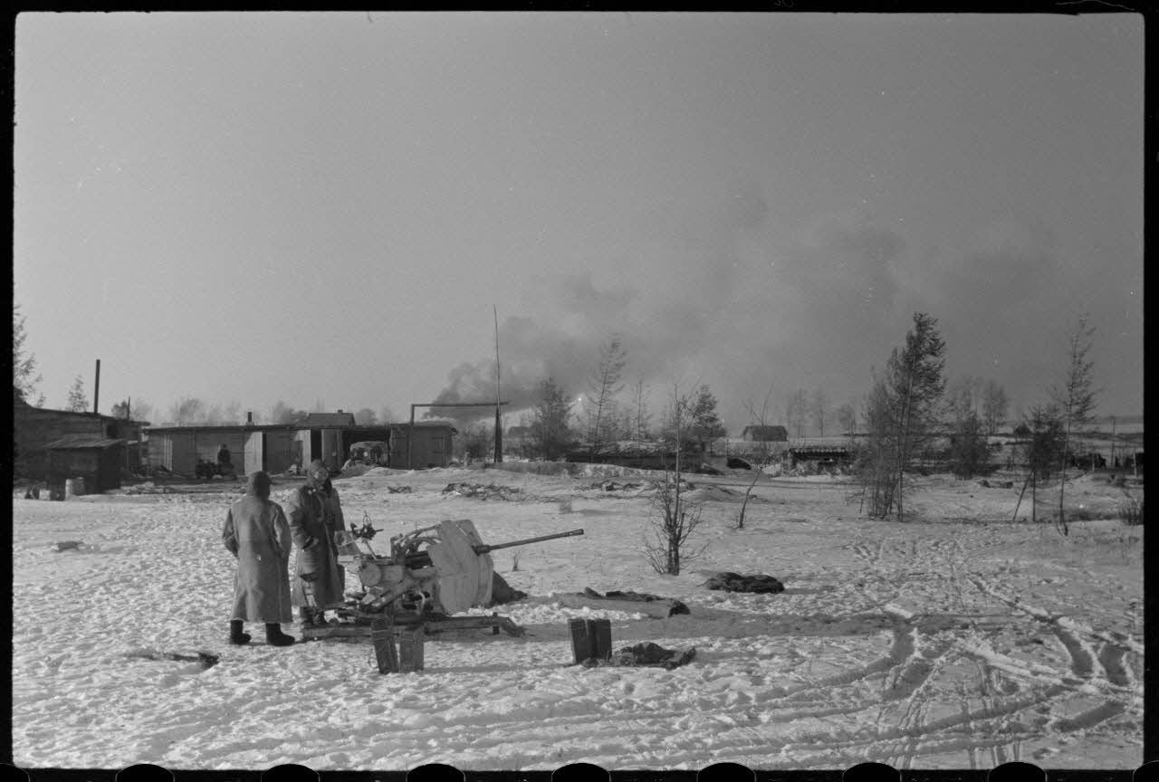 Dans le cadre de l'opération Büffelbewegung, la protection d'une route enneigée par des canons de 2