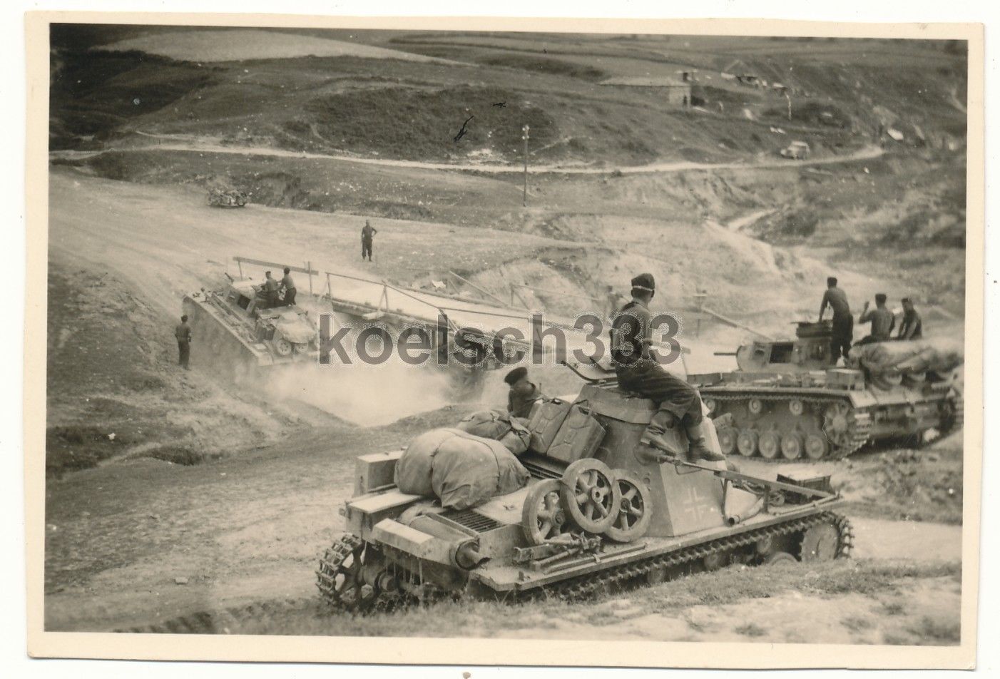 Foto Jugoslawien Panzerbefehlswagen I und Panzer III im Gelände