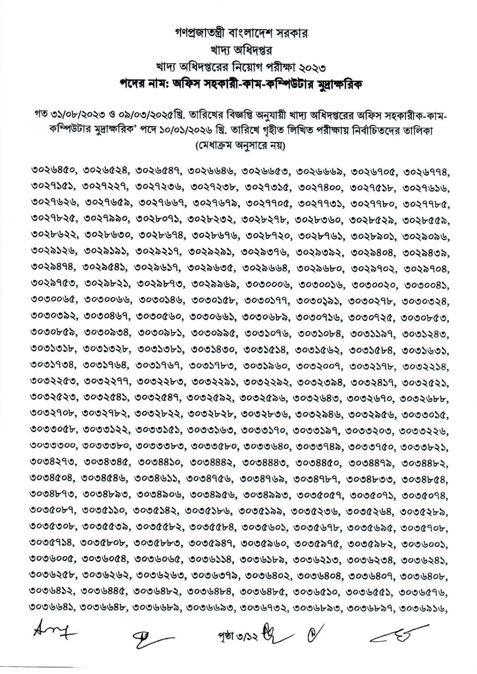 Food Office Assistant Cum Computer Typist Written Exam Result 2026 PDF 05