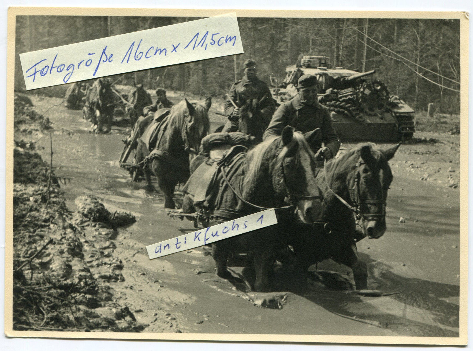 Panzer und Pferde auf Schlamm-Straße von Staraja Russa nach Chol