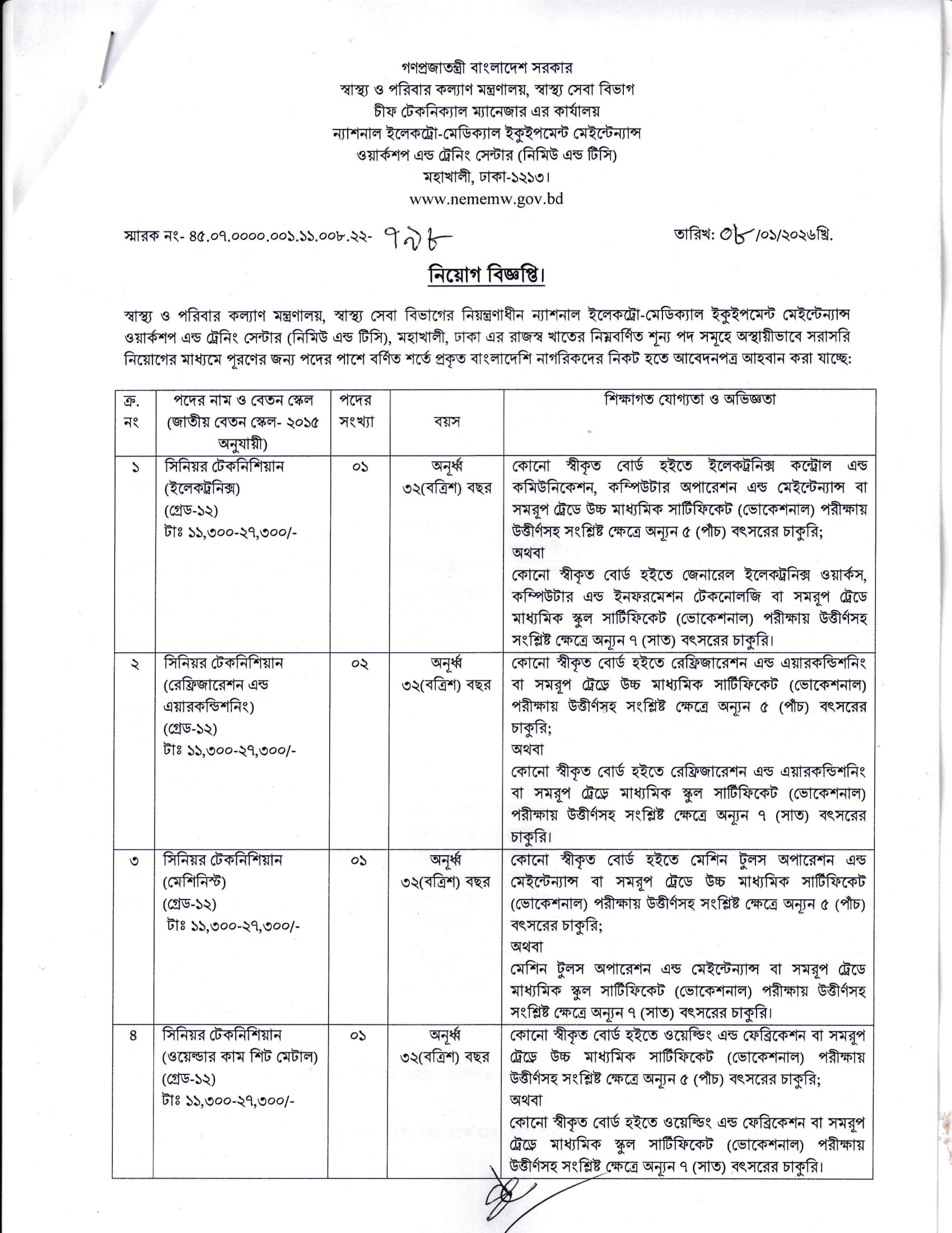 NEMEMW and TC Job Circular 2026 PDF 1