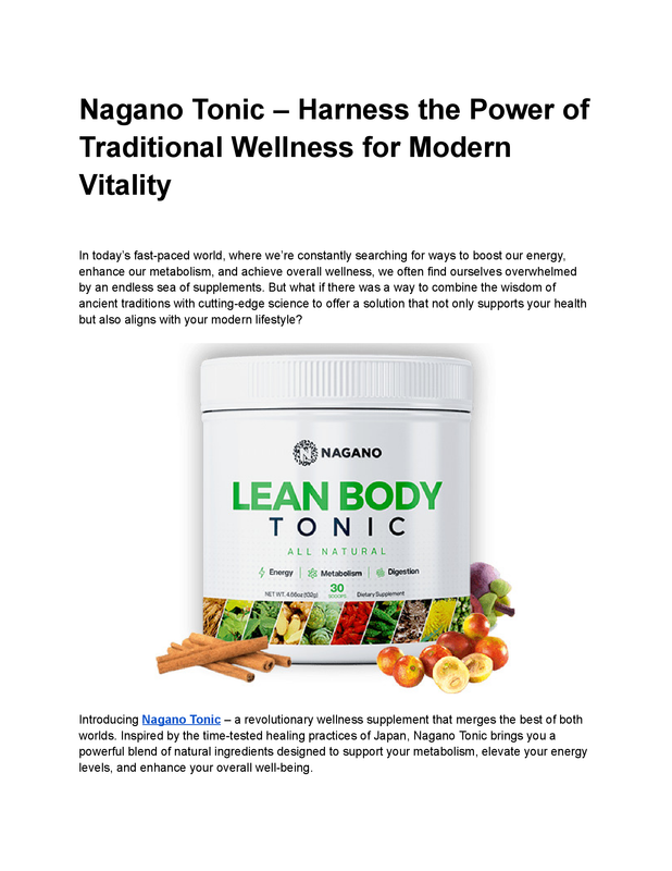 Nagano Tonic – Harness the Power of Traditional Wellness for Modern Vitality - Google Docs
